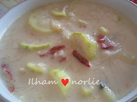 Resepi labu air masak lemak. Dah siap masak baru teringat yang lauk ni sedap gila weh makan dengan nasi putih. Keesokannya saya panaskan dan hidang untuk makan tengahari. Ada yang tidak habis saya simpan dalam peti ais. Masukkan santan garam secukup rasa.