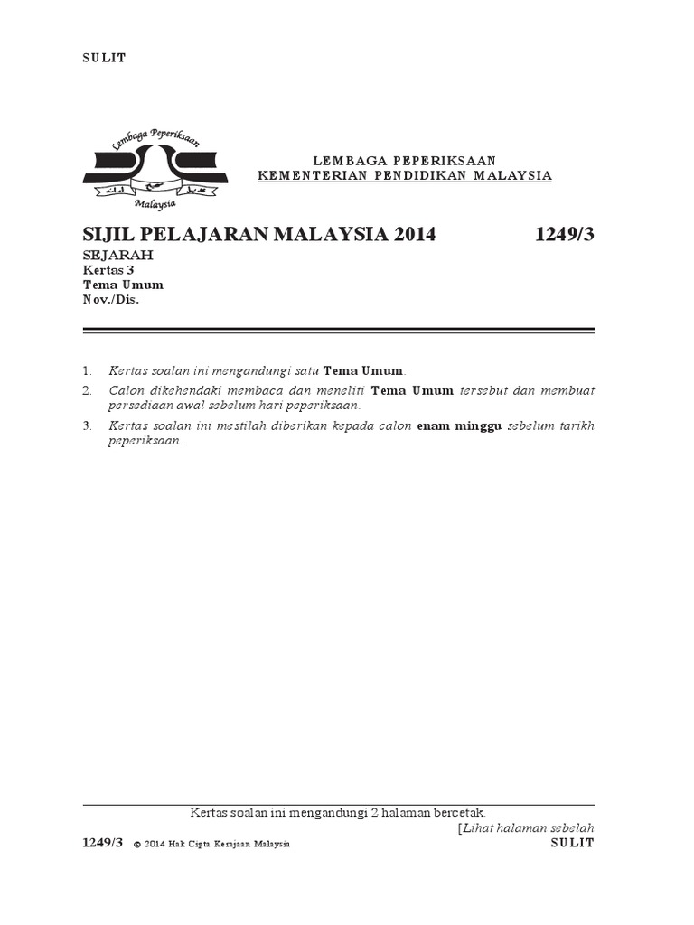 Spm 2014 Tema Umum Kertas 3 Sejarah Spm